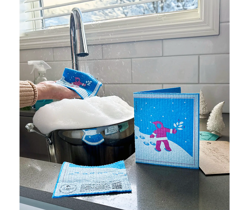 💧 Just add water! This patented greeting card transforms into a reusable Swedish sponge cloth that replaces up to 3,000 paper towels. It's durable, absorbent, and perfect for wiping down counters or cleaning up holiday spills. Dishwasher and microwave safe, and fully compostable when worn out.