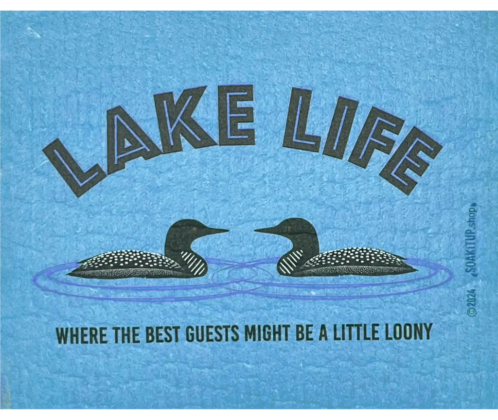 Polk a little fun at your own "looniness" for lake life or surprise your bestie at the cabin. Order your "Lake Life" Swedish Dishcloth today!